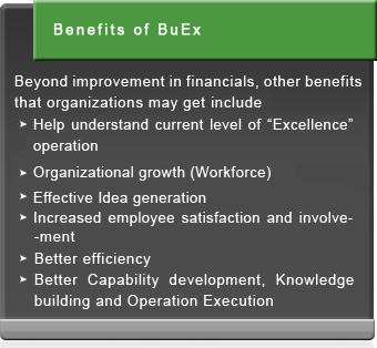 BuEx model is a framework that can help organization to focus thought and action in a systematic and structured way that should lead to increased performance. The model focuses on all areas and dimensions of an organization, and on factors that drive performance.