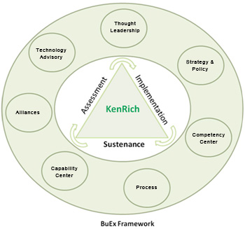 The nucleus of BuEx model is KenRich, the KM practice that provides value-added services and assists business operations to drive better performance. Click KenRichto know more about it. |